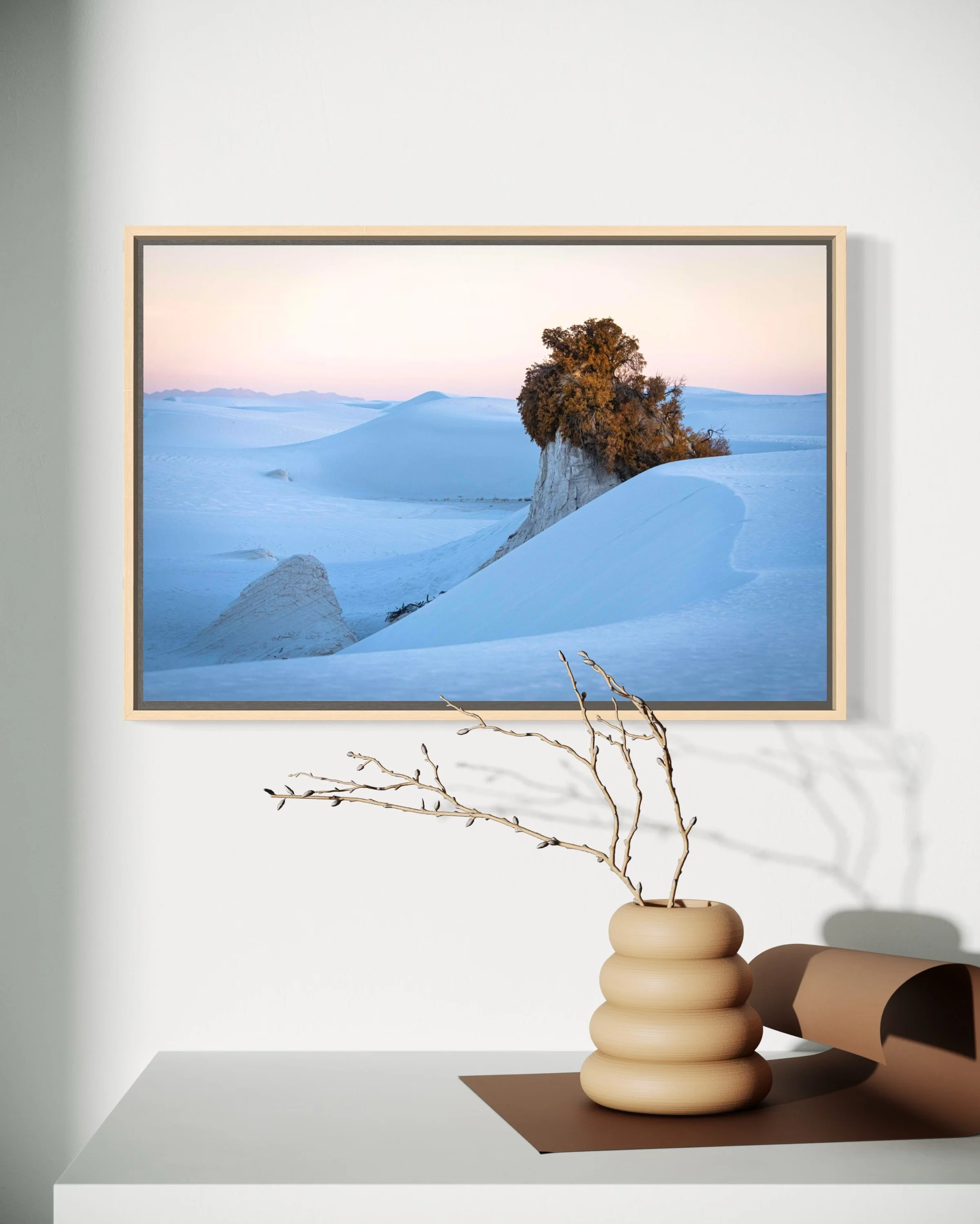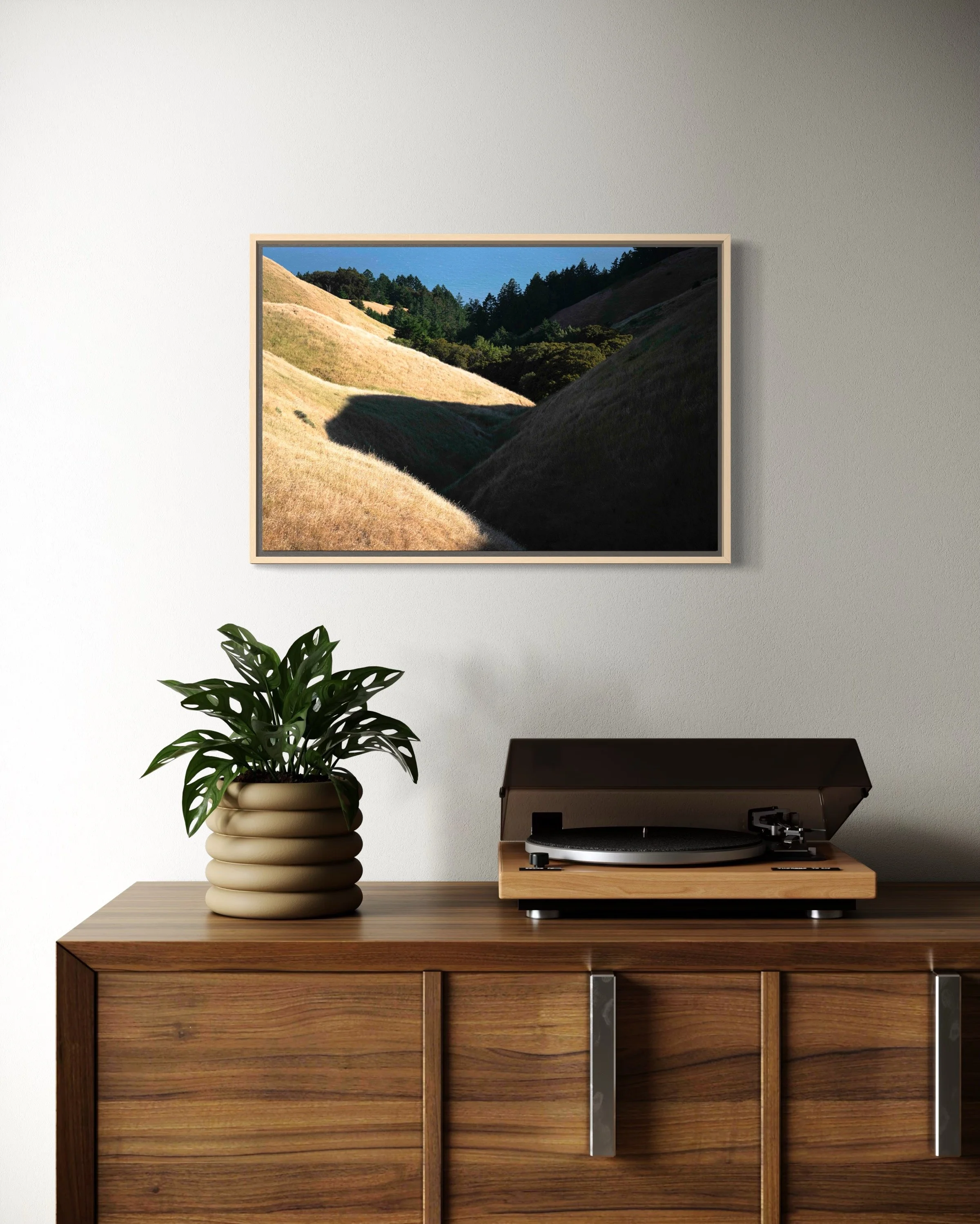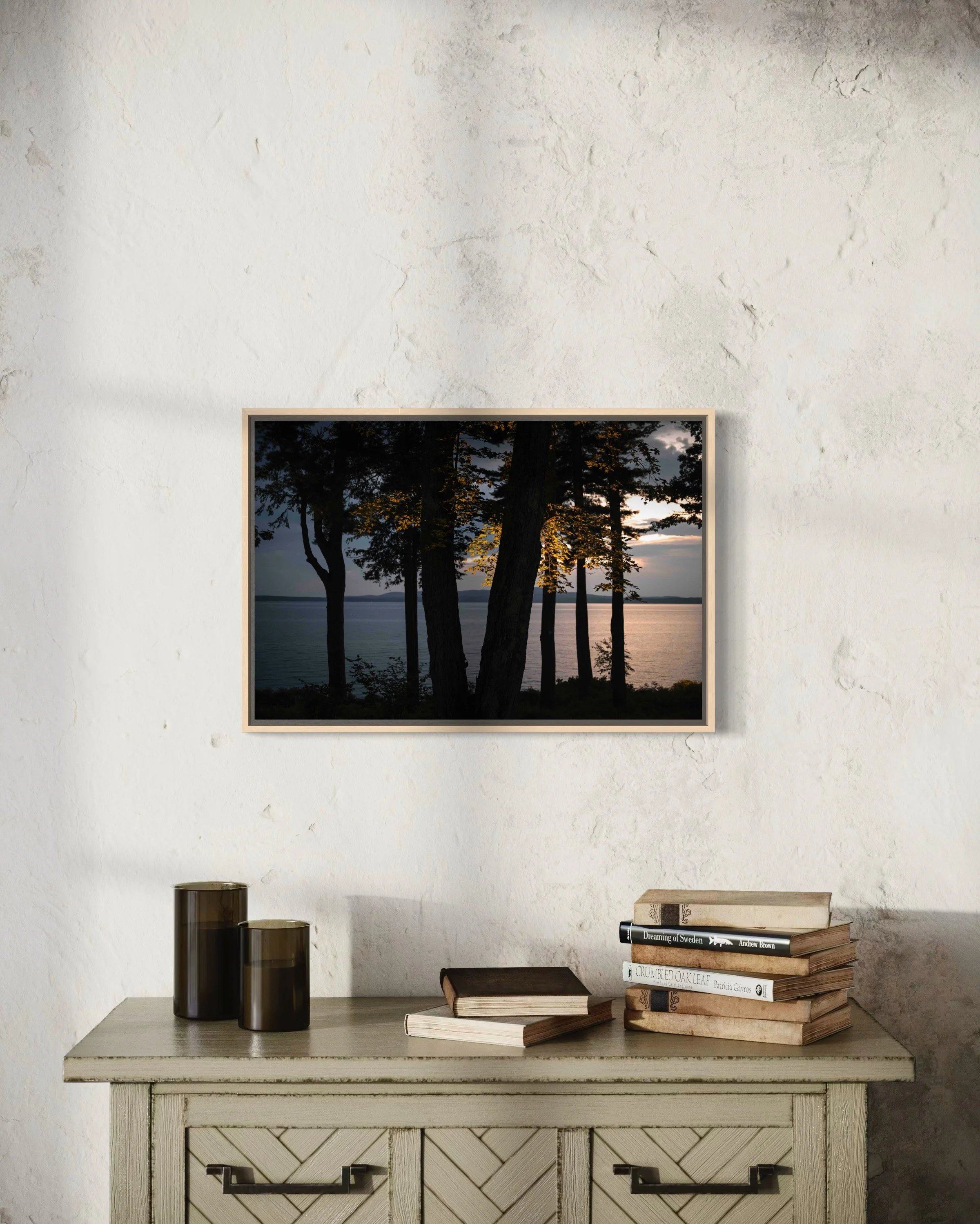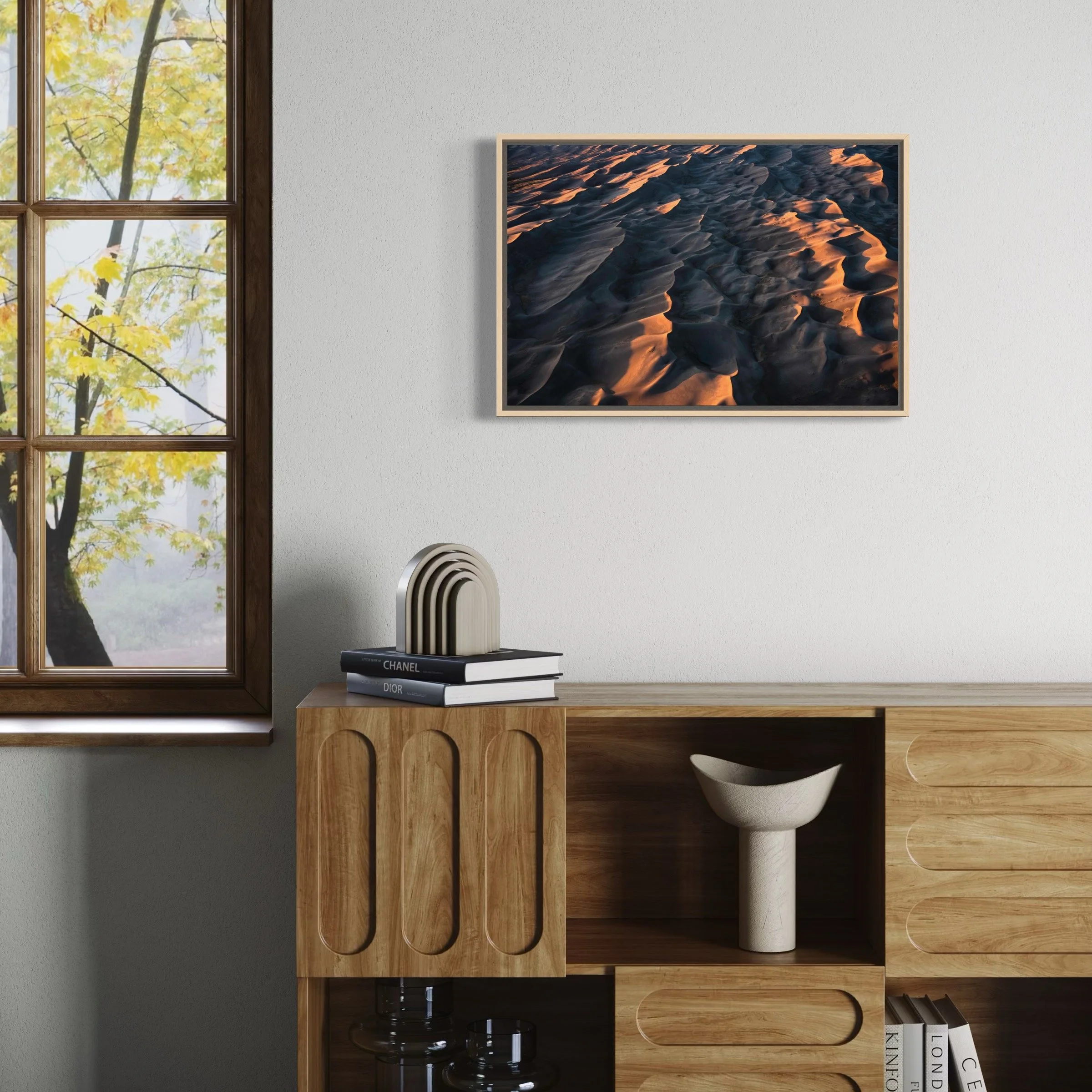 Triptych of 20x30”, 20x20”, and 20x30” pieces in inventory as HD dye infused metal prints with maple wood float frames. Regular price: $2800, Sale price: $2240